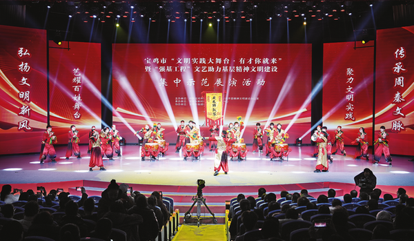 12月30日下午,寶雞市“文明實踐大舞臺·有才你就來”暨“強基工程”文藝助力基層精神文明建設(shè)集中示范展演活動,在寶雞廣電傳媒大廈演播大廳舉行?;顒右浴皞鞒兄芮匚拿}踐行文明新風(fēng)”為主題,匯聚全市各縣(區(qū))的優(yōu)秀群眾文藝力量,13個精彩紛呈的節(jié)目展示了我市基層文明新圖景。