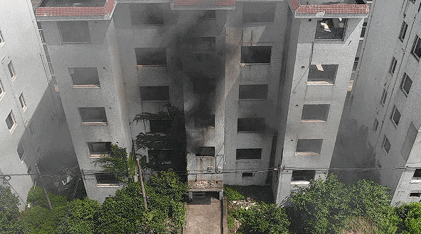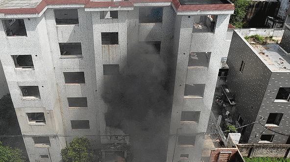 消防員選擇廢棄居民樓做入戶燃燒測試