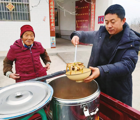 為解決老年人做飯難、吃飯湊合的問題,姚家村于2025年在村幸福院建成了“老年助餐點(diǎn)”。助餐點(diǎn)運(yùn)行后,村黨支部書記許濤留意到有部分老人未能到食堂就餐。經(jīng)走訪了解,這些老人大多是獨(dú)居高齡群體,行動(dòng)不便,難以往返就餐。村“兩委”研究后決定,專門組織村干部和志愿者為這類老人開展助老敬老愛心送餐服務(wù),并制定了普惠性就餐政策:90歲以上老人享受免費(fèi)就餐,60歲以上老人每餐僅收費(fèi)2元,做到飯菜足量、吃飽管夠。