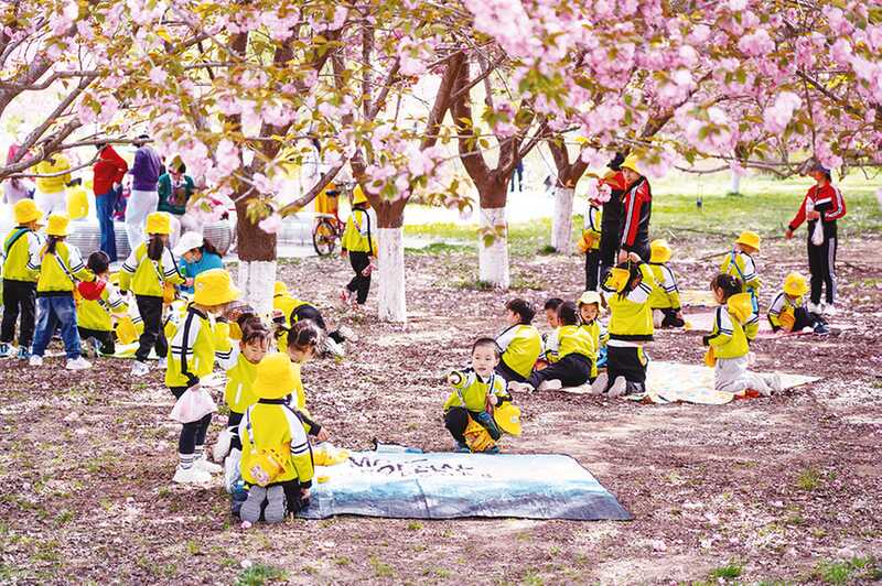 跟隨著花香的吸引探尋散落在城市中的春色,在寶雞大劇院南邊的渭河生態(tài)公園中心廣場,遠處石鼓閣與廊橋倒映于渭水之上,眼前綠柳成蔭、櫻花綻放,市民打卡拍照,孩子們在老師的帶領下踏青賞櫻,主動融入這幅美景之中;經(jīng)過改造提升的寶雞火車站廣場,設計別具一格,有靚麗的游園,成為游客初到寶雞時看到的最美城市名片;在金渭湖水土保持科技示范園,垂柳與海棠倒映在荷花池中,身姿迷人,這里環(huán)境清幽、景色綺麗,引得市民駐足欣賞。