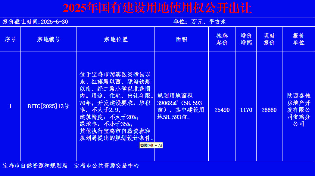 2025年國(guó)有建設(shè)用地使用權(quán)公開(kāi)出讓掛牌公示