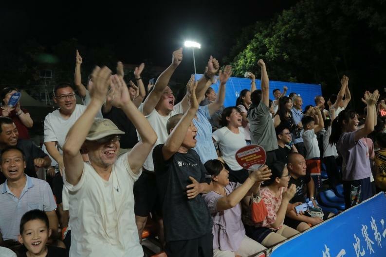 當(dāng)晚的村BA組決賽堪稱經(jīng)典。黨家堡村隊與岐星村隊從開場便展開拉鋸戰(zhàn),精準(zhǔn)三分與強(qiáng)硬突破交替上演,比分緊咬至終場前3秒。隨著黨家堡村隊10號球員一記壓哨中投命中,全場瞬間沸騰。1000余名觀眾用方言吶喊助威,“該小伙殘火很”(這小伙子真厲害)等評論此起彼伏,年過六旬的老者搖著蒲扇緊盯賽場,年輕母親懷抱嬰孩高呼加油,連蹣跚學(xué)步的孩童也模仿球員運球奔跑,歡笑聲與掌聲交織成夏夜最動人的樂章。
