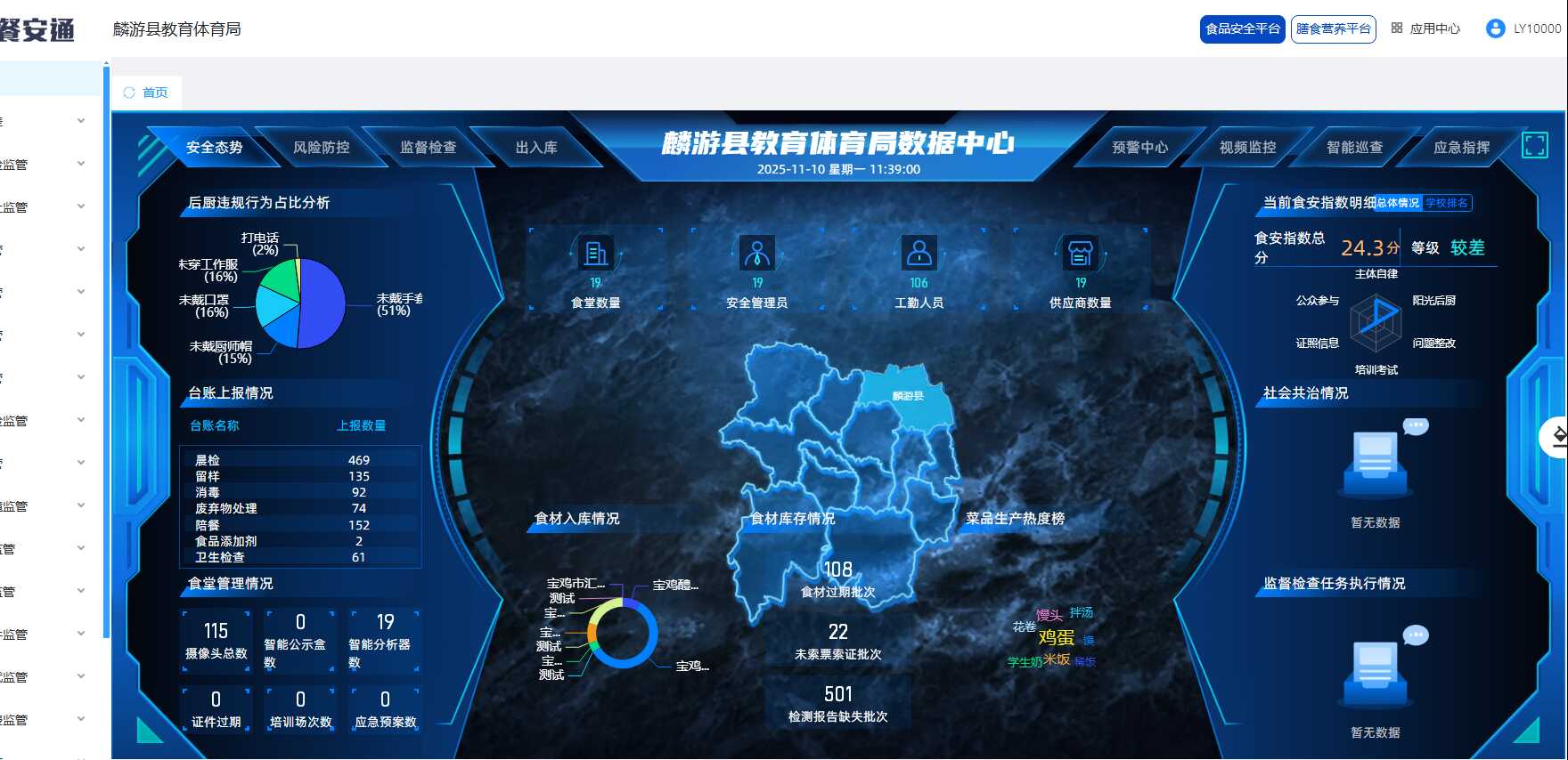 2025年8月,麟游縣教育體育局在多方考察、綜合評估的基礎上,引進“中小學幼兒園食堂互聯網+校園食品安全與營養(yǎng)數字化管理平臺”,以數字化手段打通安全管理各環(huán)節(jié),為校園食品安全監(jiān)管添加“鷹眼”,織就了一張精準、便捷、閉環(huán)的校園食品安全防護網,也讓“鼠標操作”成為校園食品安全高效監(jiān)管的關鍵抓手。