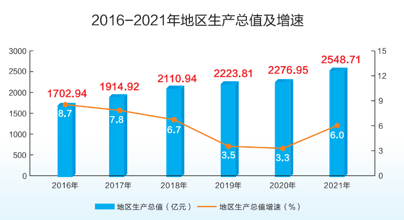 2016-2021年地區(qū)生產(chǎn)總值及增速