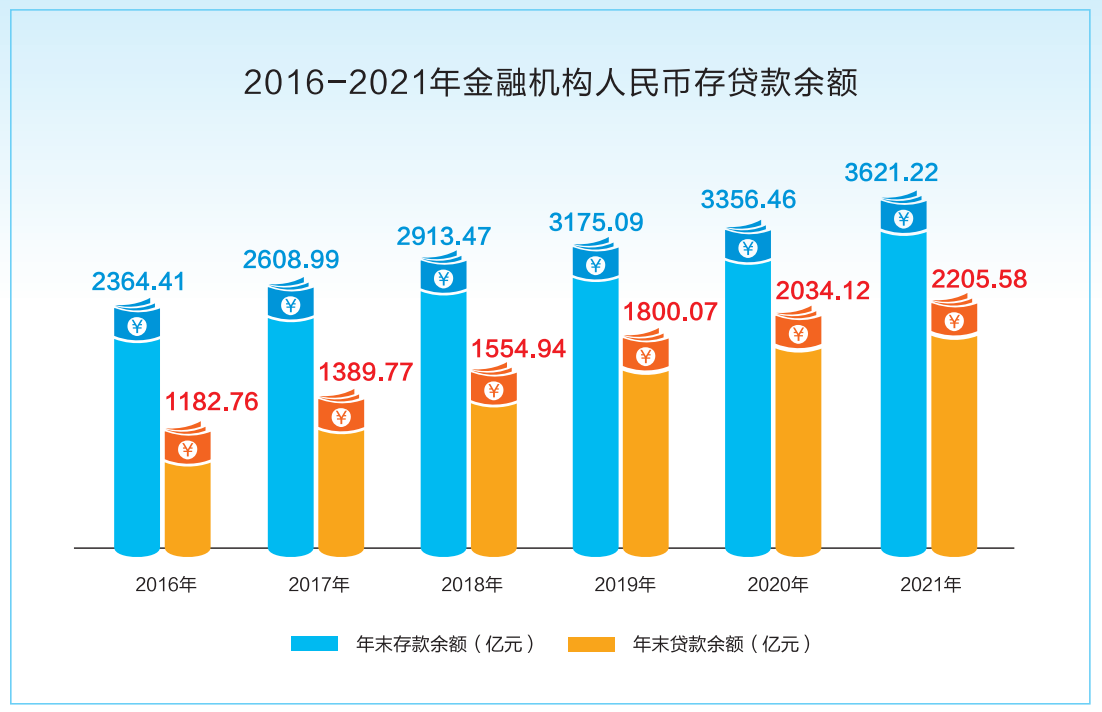 2016-2021年金融機(jī)構(gòu)人民幣存款余額