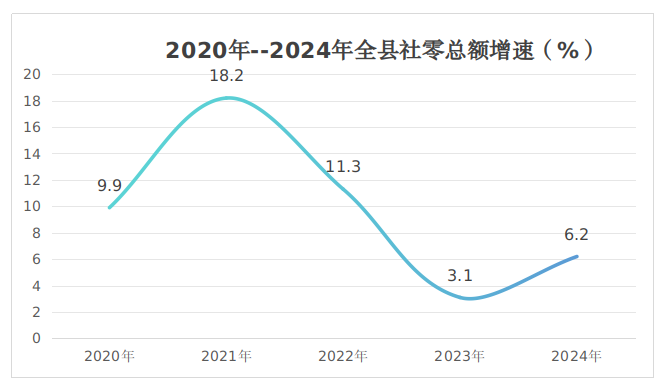 全縣完成社會消費品零售總額同比增長6.2%,其中,限額以上消費品零售額增長8.8%;限額以下消費品零售額增長5.1%。