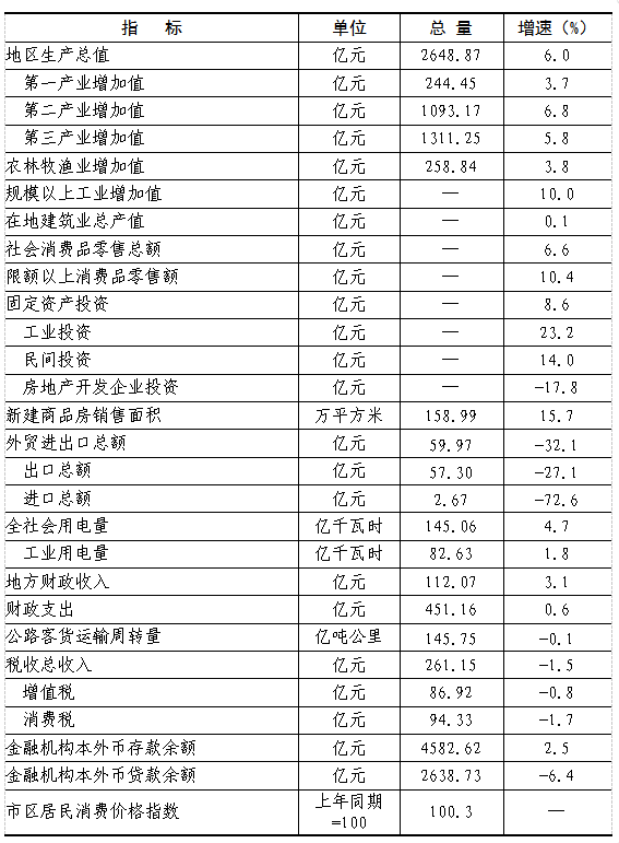 2025年全年全市主要經(jīng)濟(jì)指標(biāo)完成情況